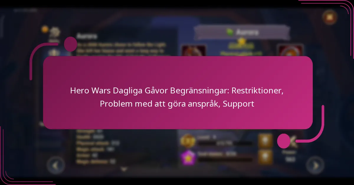 Hero Wars Dagliga Gåvor Begränsningar: Restriktioner, Problem med att göra anspråk, Support
