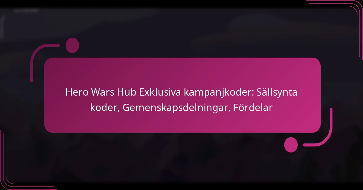 De aktuella kampanjkoderna för Hero Wars ger spelare olika belöningar i spelet, såsom ädelstenar, guld och hjälte-skins. Dessa koder uppdateras periodiskt, så det är viktigt att regelbundet kontrollera de senaste.